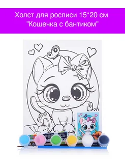 Холст для росписи 15*20 см "Кошечка с бантиком"