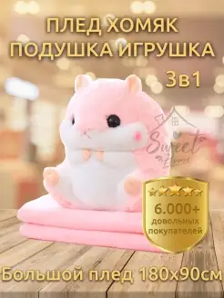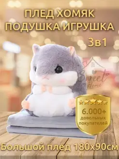 Мягкая игрушка Хомяк с пледом 3 в 1 90х180 см