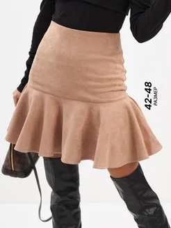 Юбка короткая мини замшевая с воланом