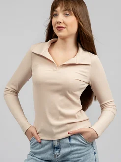 Лонгслив с длинным рукавом с вырезом и воротником поло