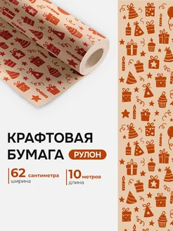 Упаковочная Крафт бумага подарочная 62см*10м "Подарки"