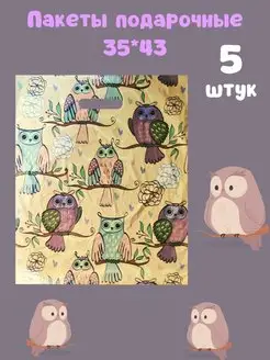 Пакеты подарочные 35*43 "Совушки" 5шт