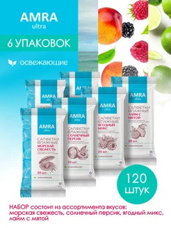 Салфетки влажные освежающие, 4 фруктовых аромата 20штХ6