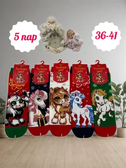 Носки женские новогодние хлопок 90% 5пар