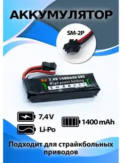 Аккумулятор Lipo 7.4 1400mAh для страйкбольных приводов