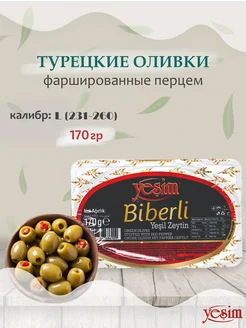 Оливки зеленые "Biberli", фаршированные красным перцем, 170г