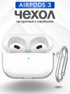 Чехол на наушники airpods 3 с карабином, прозрачный