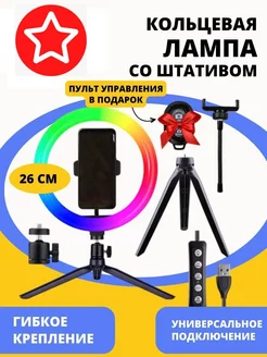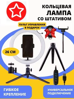 Кольцевая LED селфи лампа с настольным штативом 26см