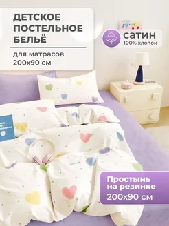 Постельное белье детское 1.5 на резинке 90х200 сатин
