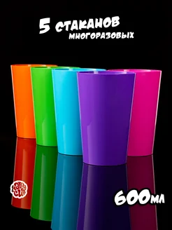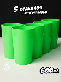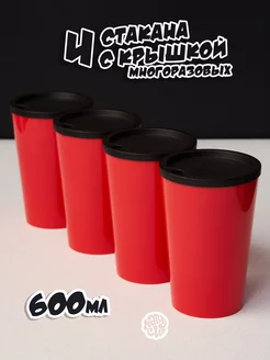 Многоразовые пластиковые стаканы с крышкой, 600 мл