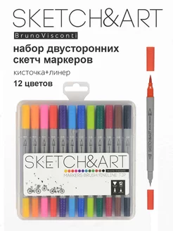 Набор капиллярных двусторонних ручек "SKETCH&ART" 12цв