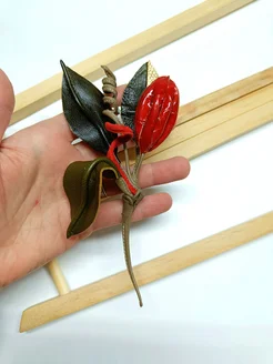 Брошь кожаная каркасная "Magic Flower" ручная работа