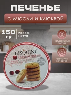 Печенье Бисквини с мюсли и клюквой в жестяной банке, 150 г