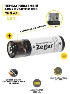 Батарейка аккумулятор аа пальчиковая литийионная USB заряд