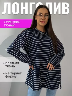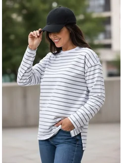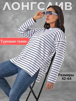 Лонгслив в полоску оверсайз удлиненный большие размеры