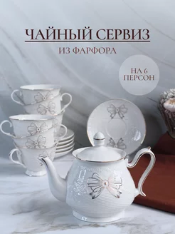 Чайный сервиз из фарфора на 6 персон с заварочным чайником