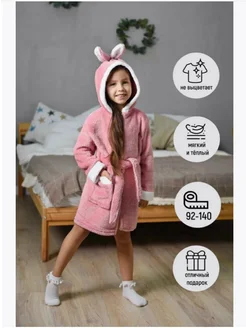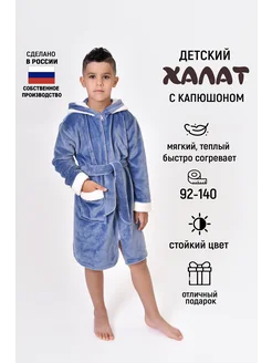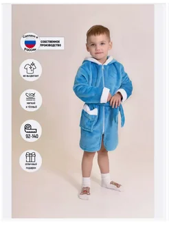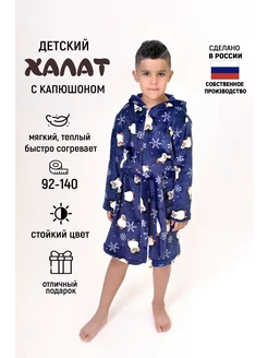 Халат детский для мальчика на молнии с капюшоном Медведь