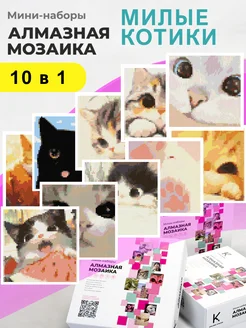 Мини - наборы Алмазная мозаика "Милые котики" 10 шт 14х14 см