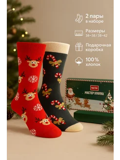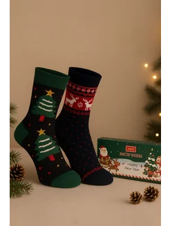 Новогодние носки в картонной коробке (2 пары)