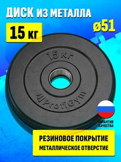 Блин 15 кг для штанги и гантелей - диск для грифа 51 мм