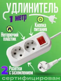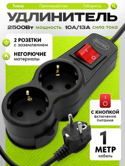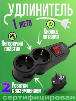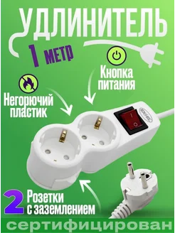 Удлинитель сетевой 1 метр с выключателем 2 гнезда