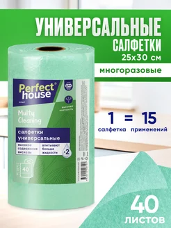 Салфетки для уборки дома и кухни многоразовые, рулон 40 штук