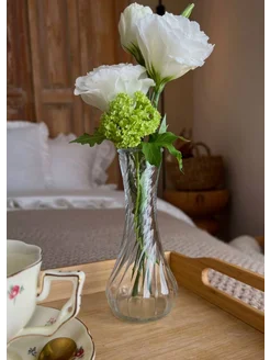 Ваза для цветов и сухоцветов стеклянная маленькая, 15 см