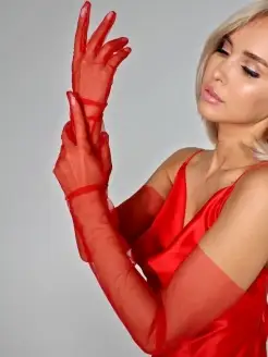 Перчатки в сетку длинные прозрачные розовые фуксия