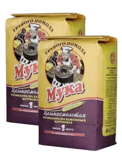 Мука цельносмолотая грубого помола пшеничная, 2*1кг