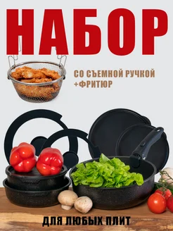 Кастрюля и сковороды со съемной ручкой и фритюром