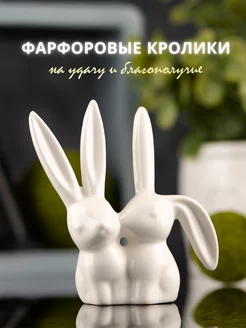 Сувенир фигypка интерьерная фapфopoвaя Кролики, 11 см