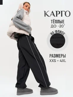 Тёплые широкие штаны карго на флисе оверсайз У2К