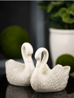 Сувенир интерьерная фигурка из керамики пара Лебедей, 2 шт