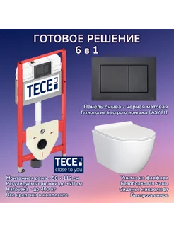 Инсталляция с унитазом комплект + кнопка черная 6в1