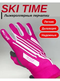Лыжероллерные перчатки c перфорацией розовые