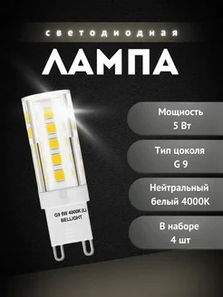 4 шт Лампа светодиодная LED 5Вт 4000K 400Лм G9