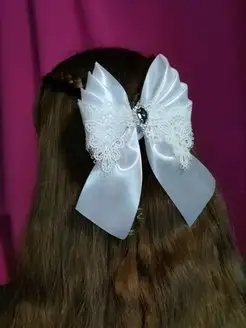Бант белый для девочек на резинке школьный 1 шт