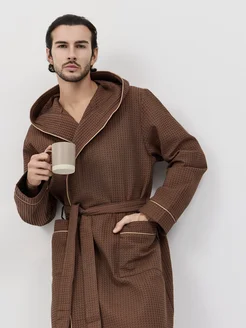Халат домашний мужской вафельный с капюшоном