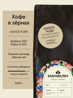Кофе в зернах CHOCO PUER 1 кг, Арабика 50% и Робуста 50%