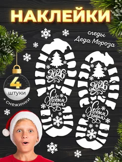 Новогодние наклейки на пол следы Деда Мороза 2026
