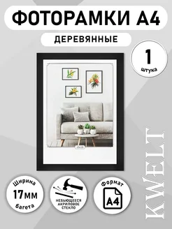 Рамка для фото А4 МДФ черная, 1 шт ПЭТ стекло