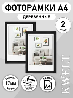 Фоторамка МДФ черная А4 2 шт ПЭТ небьющееся стекло