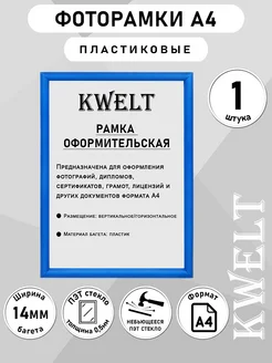 Рамка для фото А4 синяя, 1 шт ПЭТ стекло
