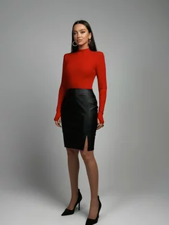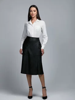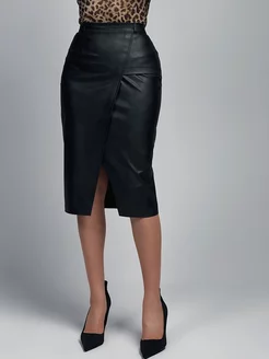 Юбка кожаная карандаш миди с разрезом спереди 60 см