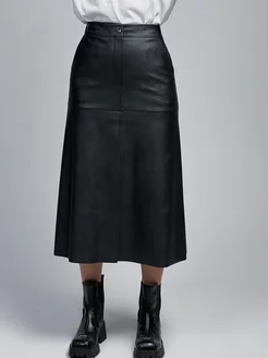 Юбка кожаная трапеция с разрезом спереди 83 см
