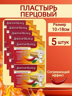 Пластырь обезболивающий перцовый 10x18см, без перфорации, 5ш…