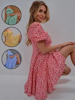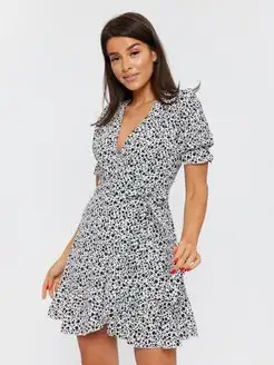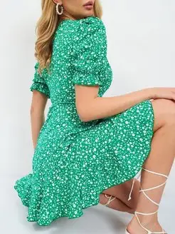 Платье летнее на запах мини короткое в цветочек 2024
