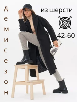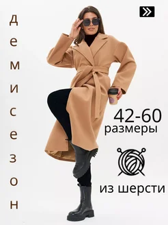 Пальто демисезонное оверсайз с поясом больших размеров