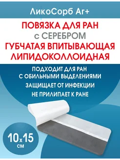 Липидоколлоидная повязка с серебром ЛикоСорб Аг+ 10х15 см
