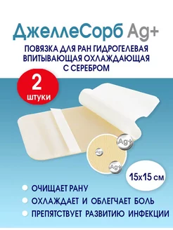 Повязка для ран гидрогелевая ДжеллеСорб Аг+ 15х15см 2 шт
